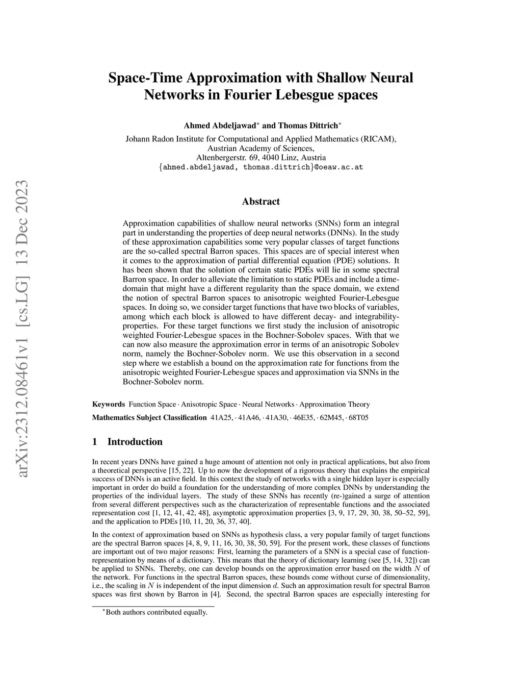 Space-Time Approximation with Shallow Neural Networks in Fourier