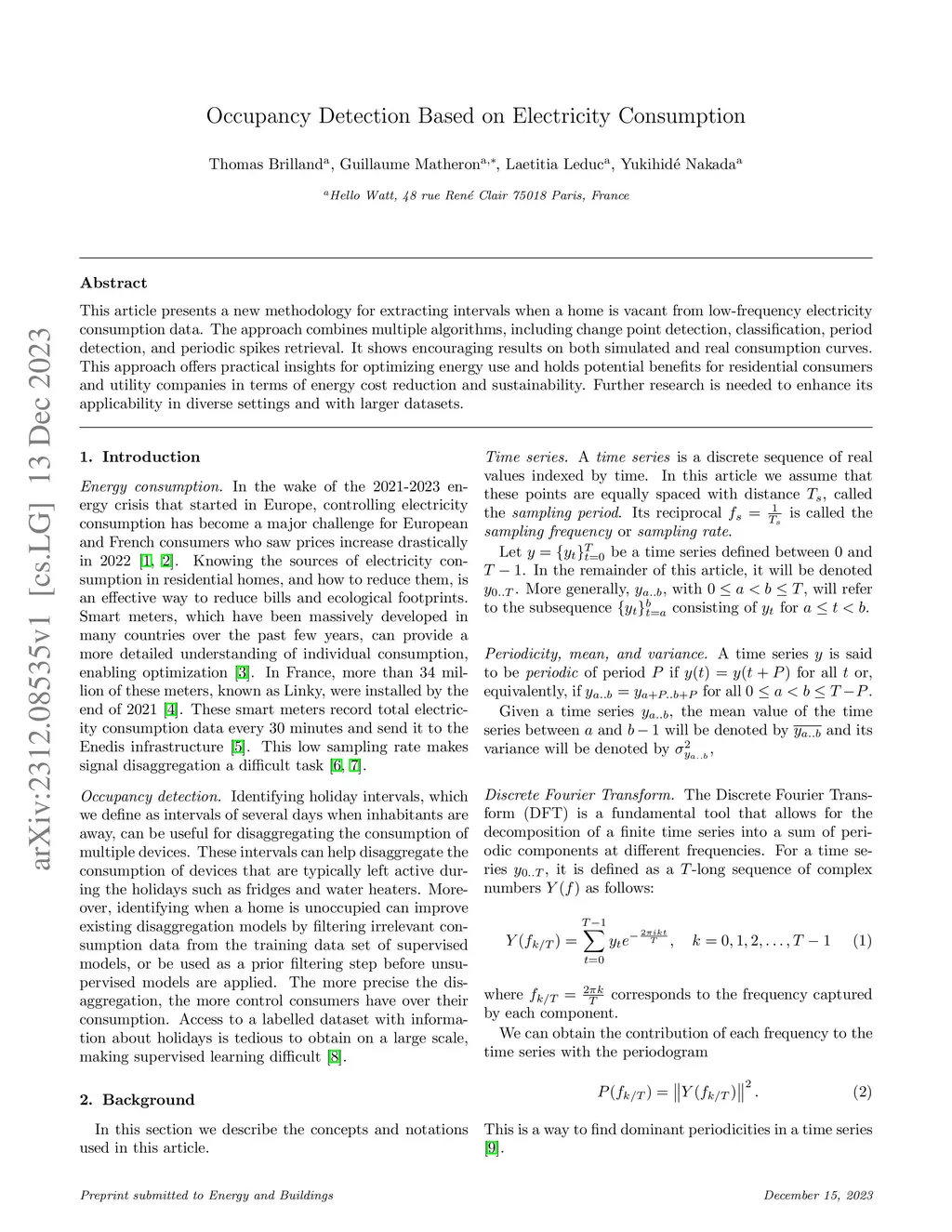 Occupancy Detection Based on Electricity Consumption