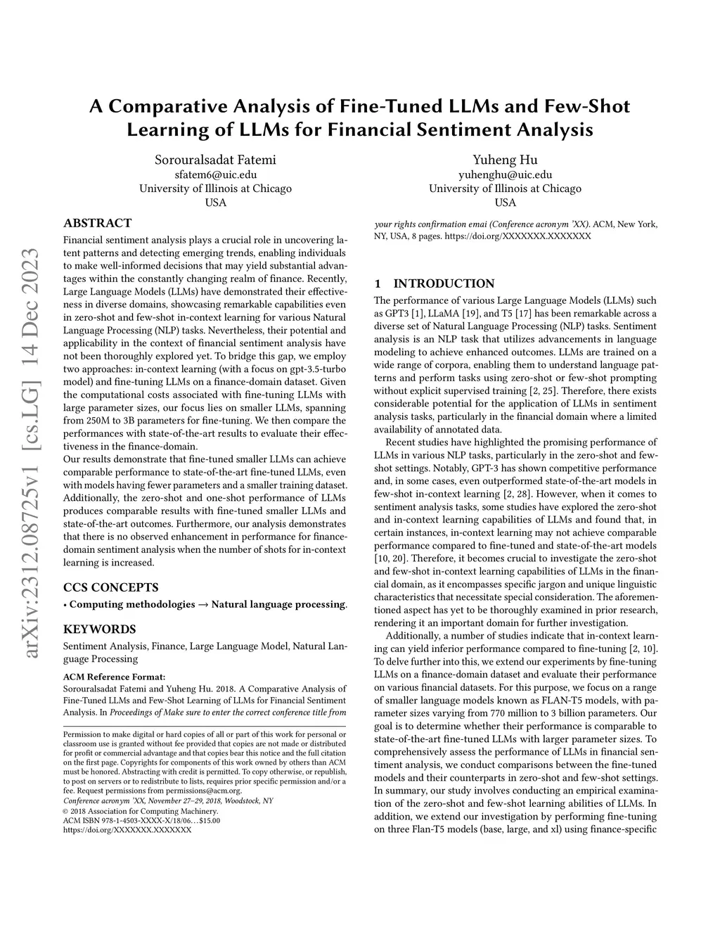 Financial sentiment analysis plays a crucial role in uncovering latent patterns and detecting emerging trends, enabling individuals to make well-informed decisions that may yield substantial advantages within the constantly changing realm of finance. Recently, Large Language Models (LLMs) have demonstrated their effectiveness in diverse domains, showcasing remarkable capabilities even in zero-shot and few-shot in-context learning for various Natural Language Processing (NLP) tasks. Nevertheless, their potential and applicability in the context of financial sentiment analysis have not been thoroughly explored yet. To bridge this gap, we employ two approaches: in-context learning (with a focus on gpt-3.5-turbo model) and fine-tuning LLMs on a finance-domain dataset. Given the computational costs associated with fine-tuning LLMs with large parameter sizes, our focus lies on smaller LLMs, spanning from 250M to 3B parameters for fine-tuning. We then compare the performances with state-of-the-art results to evaluate their effectiveness in the finance-domain. Our results demonstrate that fine-tuned smaller LLMs can achieve comparable performance to state-of-the-art fine-tuned LLMs, even with models having fewer parameters and a smaller training dataset. Additionally, the zero-shot and one-shot performance of LLMs produces comparable results with fine-tuned smaller LLMs and state-of-the-art outcomes. Furthermore, our analysis demonstrates that there is no observed enhancement in performance for finance-domain sentiment analysis when the number of shots for in-context learning is increased.