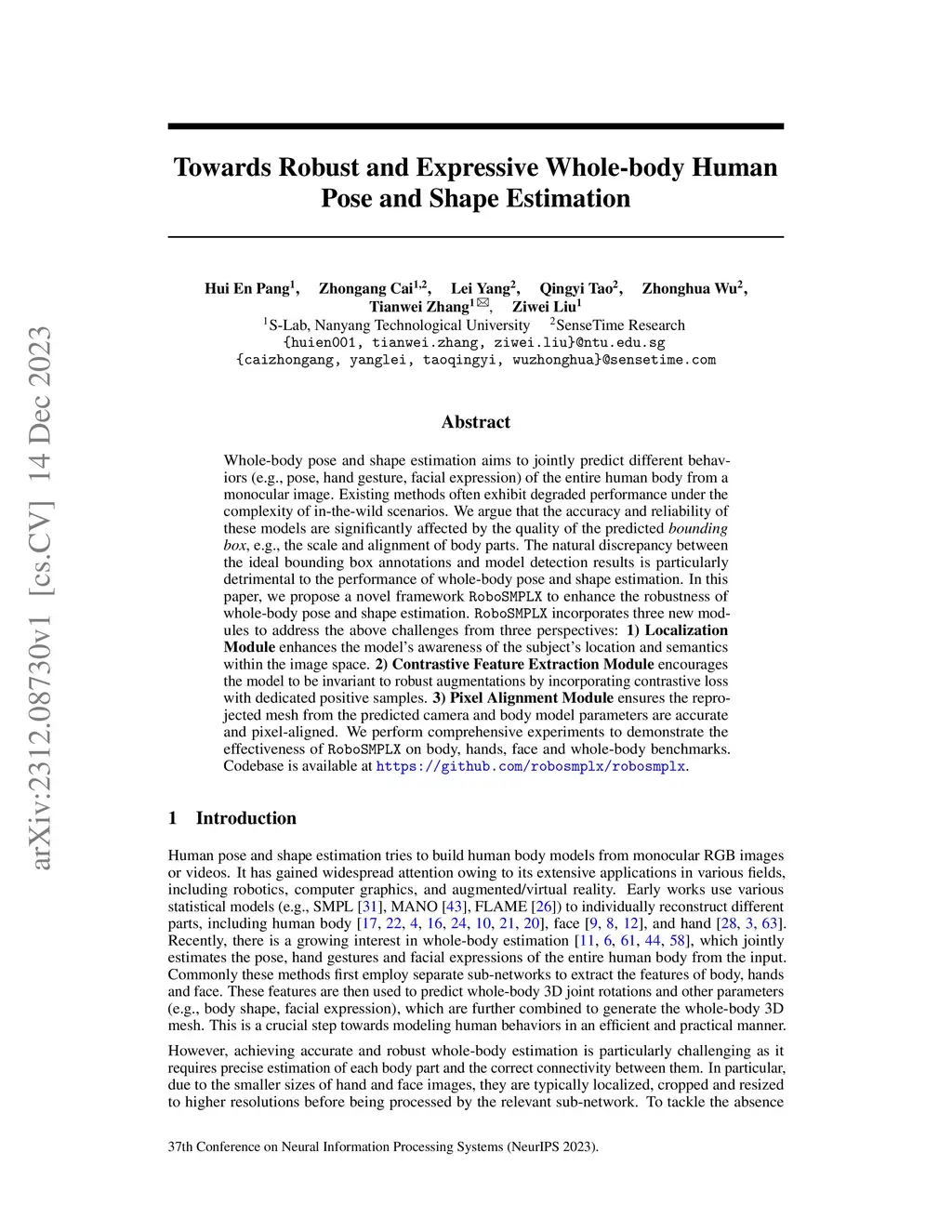 Towards Robust and Expressive Whole-body Human Pose and Shape Estimation