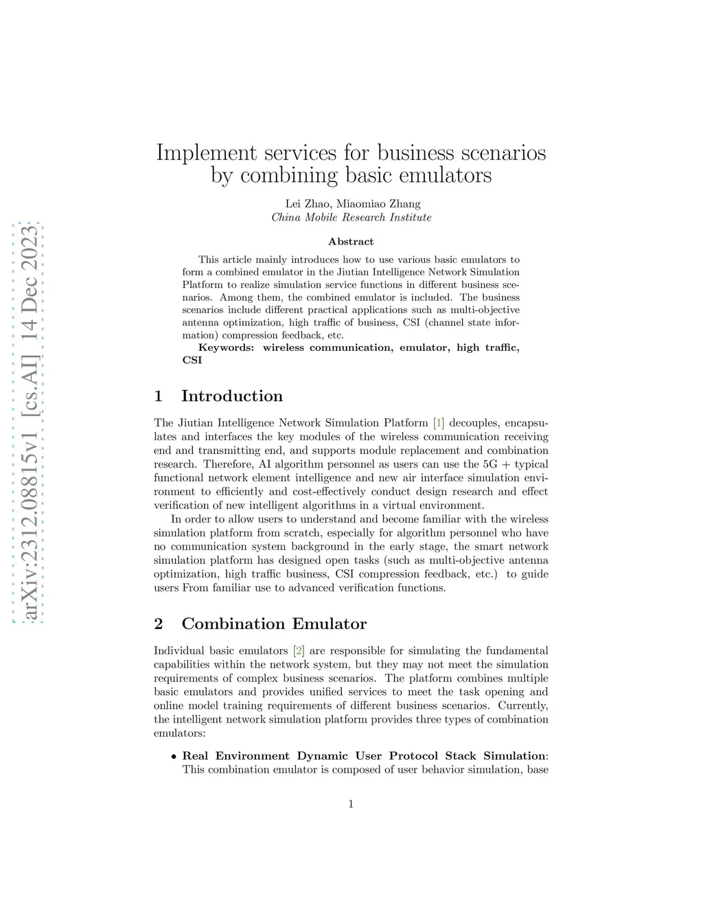 This article mainly introduces how to use various basic emulators to form a combined emulator in the Jiutian Intelligence Network Simulation Platform to realize simulation service functions in different business scenarios. Among them, the combined emulator is included. The business scenarios include different practical applications such as multi-objective antenna optimization, high traffic of business, CSI (channel state information) compression feedback, etc.