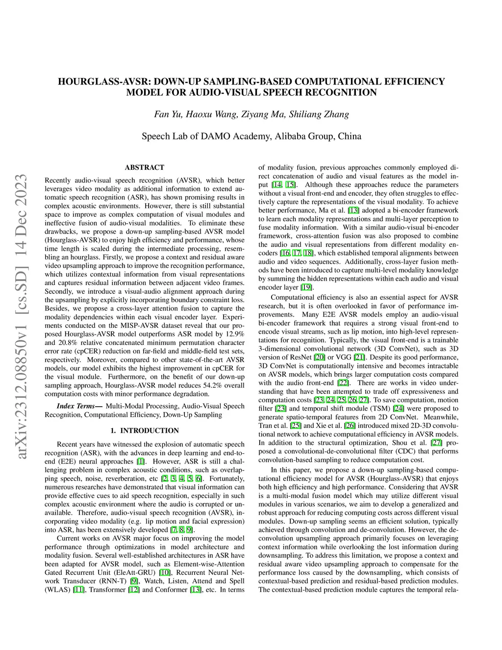 Hourglass-AVSR: Down-Up Sampling-based Computational Efficiency Model