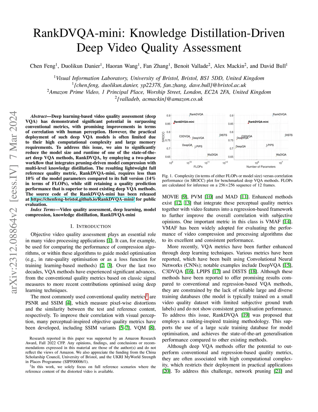 Deep learning-based video quality assessment (deep VQA) has demonstrated significant potential in surpassing conventional metrics, with promising improvements in terms of correlation with human perception. However, the practical deployment of such deep VQA models is often limited due to their high computational complexity and large memory requirements. To address this issue, we aim to significantly reduce the model size and runtime of one of the state-of-the-art deep VQA methods, RankDVQA, by employing a two-phase workflow that integrates pruning-driven model compression with multi-level knowledge distillation. The resulting lightweight full reference quality metric, RankDVQA-mini, requires less than 10% of the model parameters compared to its full version (14% in terms of FLOPs), while still retaining a quality prediction performance that is superior to most existing deep VQA methods. The source code of the RankDVQA-mini has been released at https://chenfeng-bristol.github.io/RankDVQA-mini/ for public evaluation.