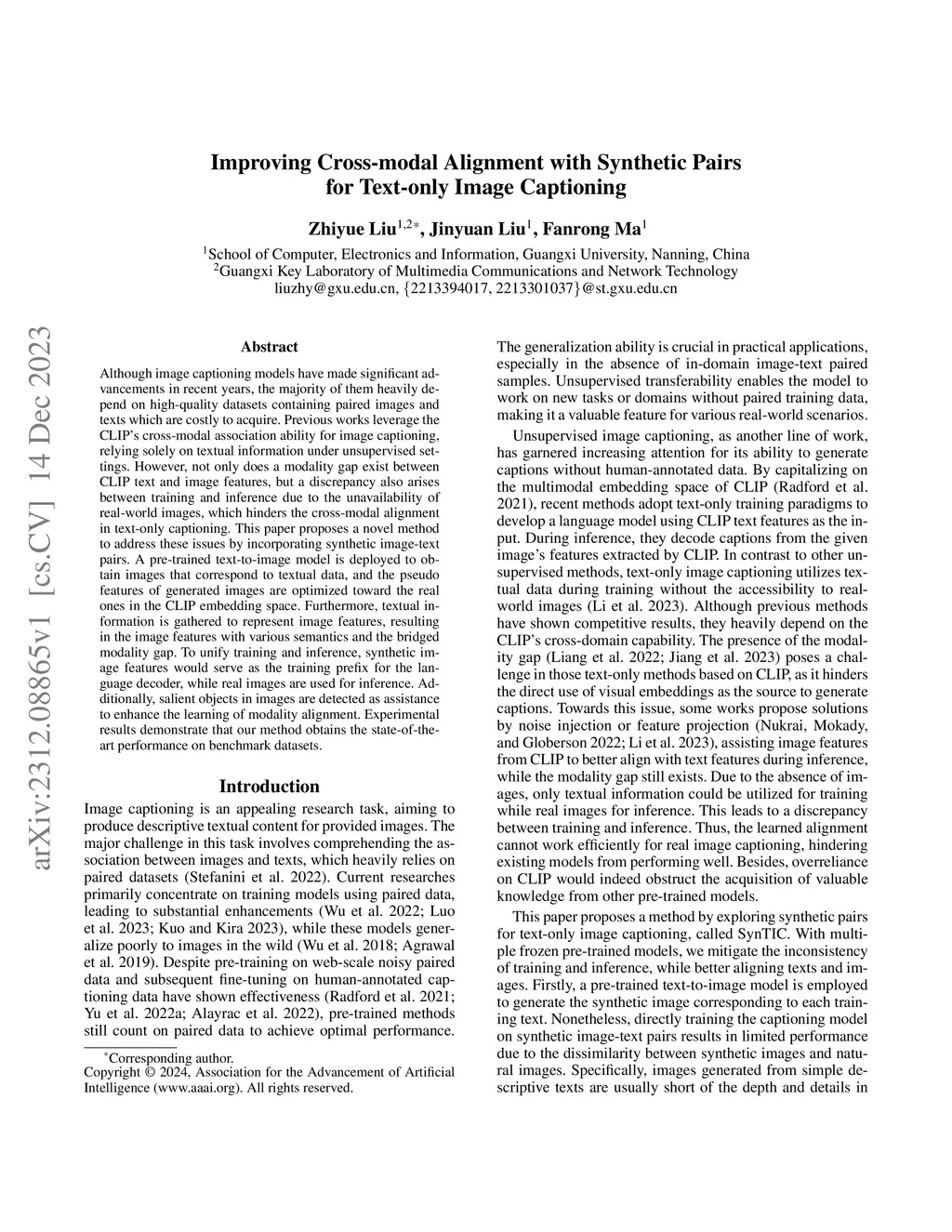 Improving Cross-modal Alignment with Synthetic Pairs for Text-only Image