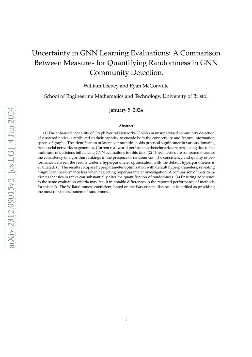 (1) The enhanced capability of Graph Neural Networks (GNNs) in unsupervised community detection of clustered nodes is attributed to their capacity to encode both the connectivity and feature information spaces of graphs. The identification of latent communities holds practical significance in various domains, from social networks to genomics. Current real-world performance benchmarks are perplexing due to the multitude of decisions influencing GNN evaluations for this task. (2) Three metrics are compared to assess the consistency of algorithm rankings in the presence of randomness. The consistency and quality of performance between the results under a hyperparameter optimisation with the default hyperparameters is evaluated. (3) The results compare hyperparameter optimisation with default hyperparameters, revealing a significant performance loss when neglecting hyperparameter investigation. A comparison of metrics indicates that ties in ranks can substantially alter the quantification of randomness. (4) Ensuring adherence to the same evaluation criteria may result in notable differences in the reported performance of methods for this task. The Randomness coefficient, based on the Wasserstein distance, is identified as providing the most robust assessment of randomness.