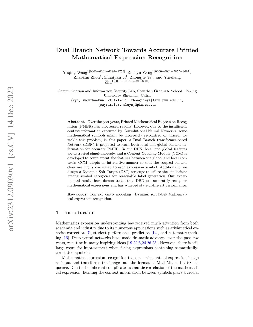 Dual Branch Network Towards Accurate Printed Mathematical Expression
