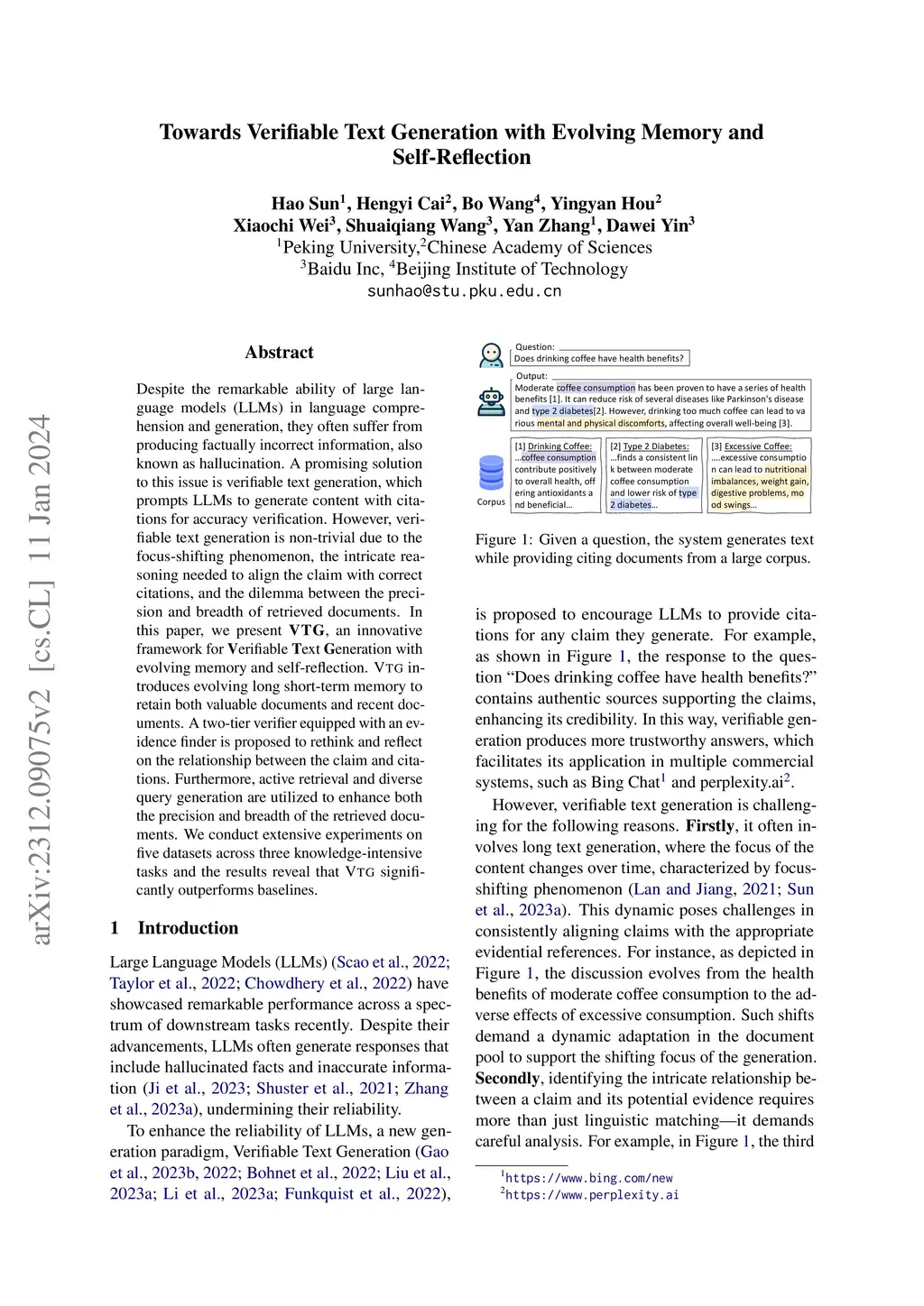 Towards Verifiable Text Generation with Evolving Memory and
