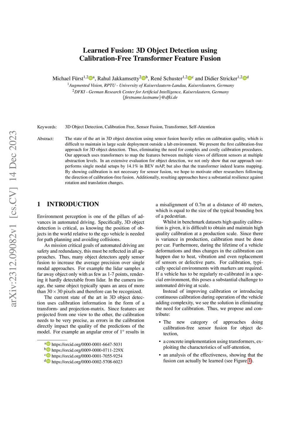 Learned Fusion: 3D Object Detection using Calibration-Free Transformer