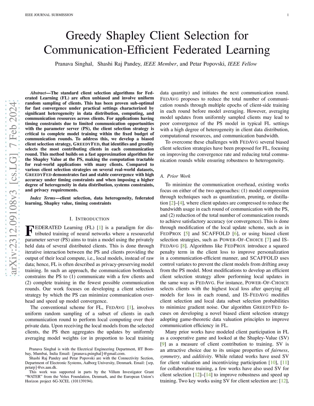 Greedy Shapley Client Selection for Communication-Efficient Federated