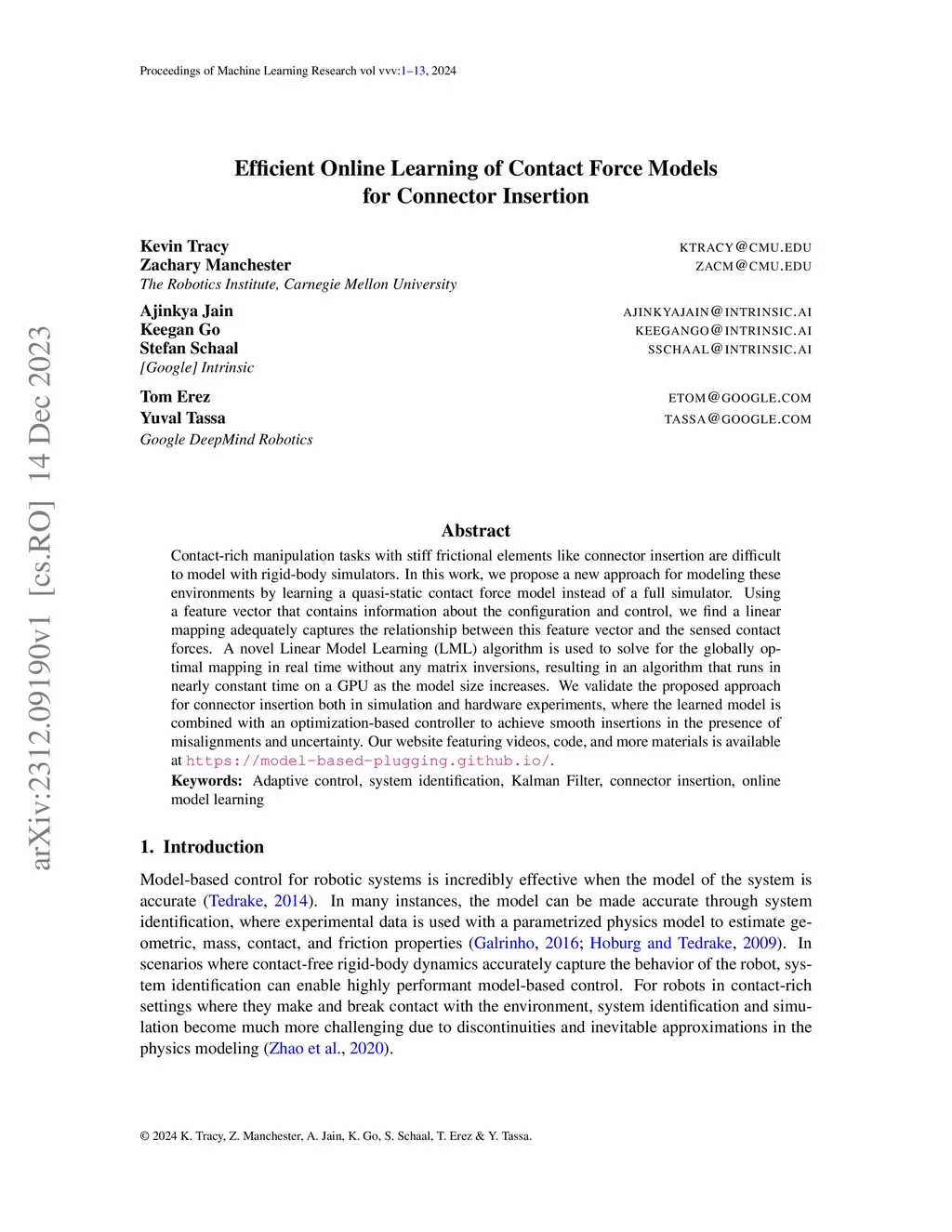 Efficient Online Learning of Contact Force Models for Connector