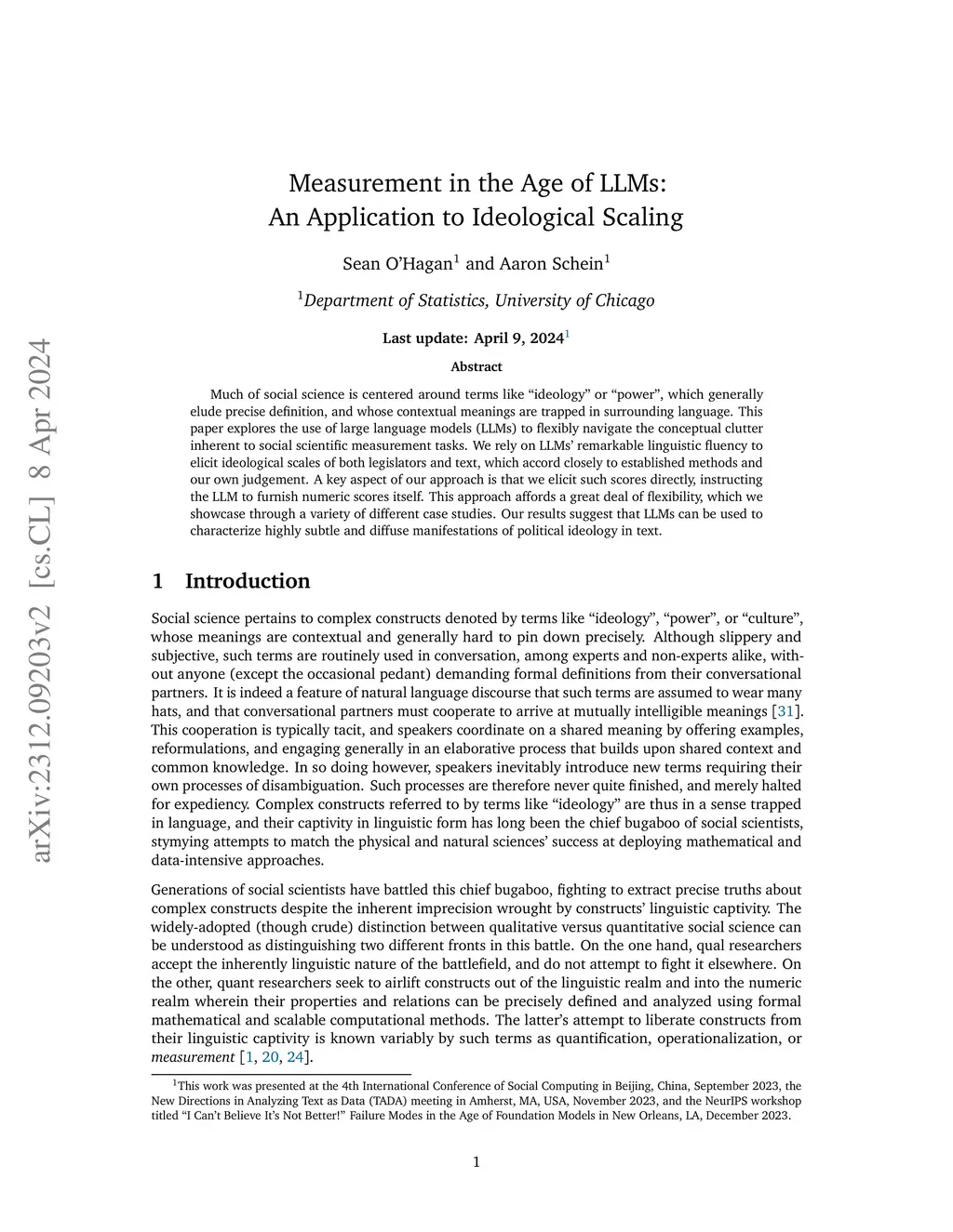 Much of social science is centered around terms like ``ideology'' or ``power'', which generally elude precise definition, and whose contextual meanings are trapped in surrounding language. This paper explores the use of large language models (LLMs) to flexibly navigate the conceptual clutter inherent to social scientific measurement tasks. We rely on LLMs' remarkable linguistic fluency to elicit ideological scales of both legislators and text, which accord closely to established methods and our own judgement. A key aspect of our approach is that we elicit such scores directly, instructing the LLM to furnish numeric scores itself. This approach affords a great deal of flexibility, which we showcase through a variety of different case studies. Our results suggest that LLMs can be used to characterize highly subtle and diffuse manifestations of political ideology in text.