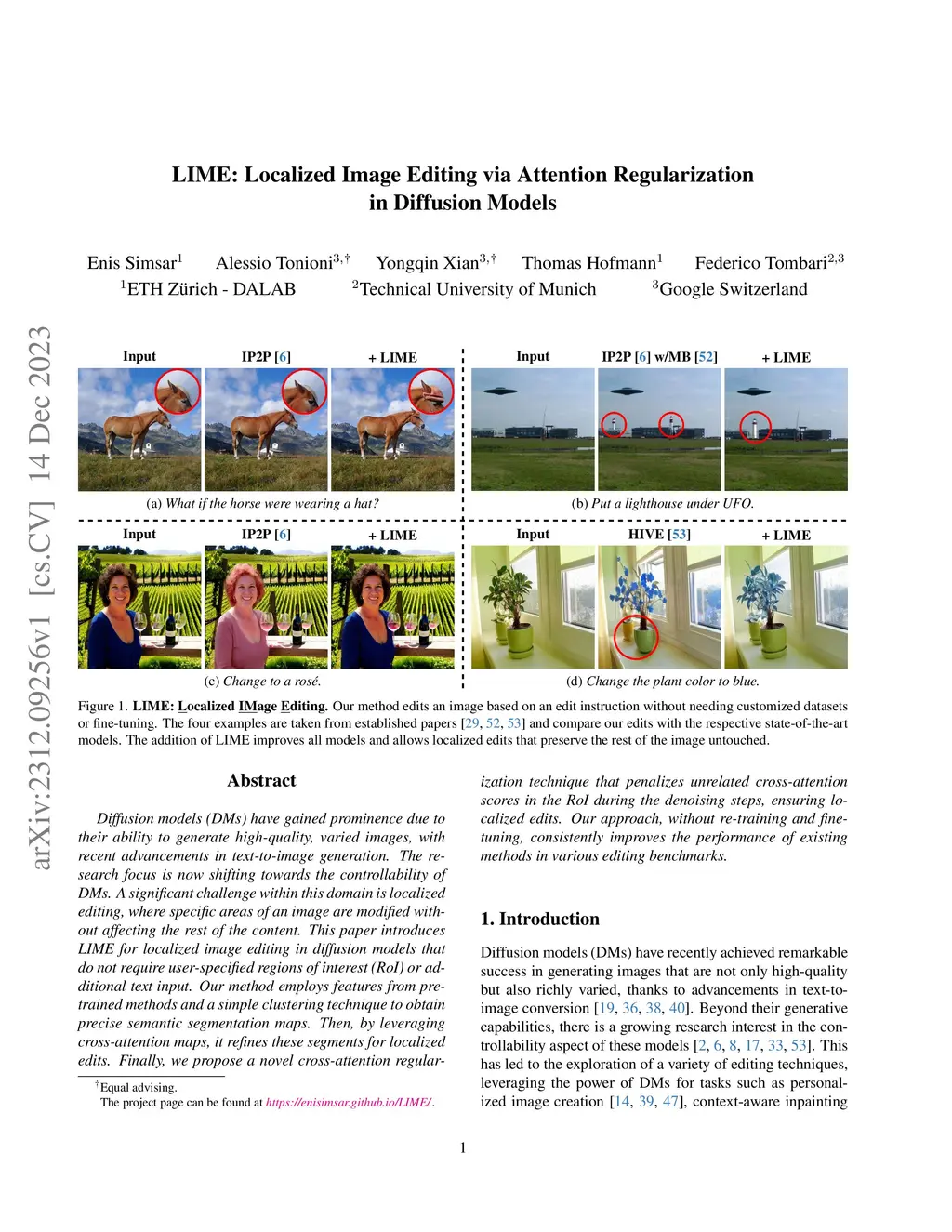 LIME: Localized Image Editing via Attention Regularization in Diffusion