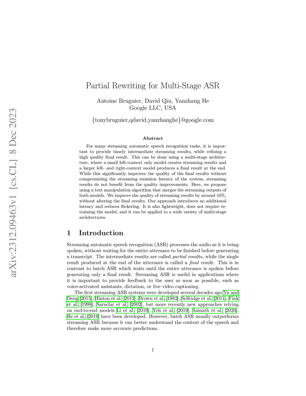 For many streaming automatic speech recognition tasks, it is important to provide timely intermediate streaming results, while refining a high quality final result. This can be done using a multi-stage architecture, where a small left-context only model creates streaming results and a larger left- and right-context model produces a final result at the end. While this significantly improves the quality of the final results without compromising the streaming emission latency of the system, streaming results do not benefit from the quality improvements. Here, we propose using a text manipulation algorithm that merges the streaming outputs of both models. We improve the quality of streaming results by around 10%, without altering the final results. Our approach introduces no additional latency and reduces flickering. It is also lightweight, does not require retraining the model, and it can be applied to a wide variety of multi-stage architectures.