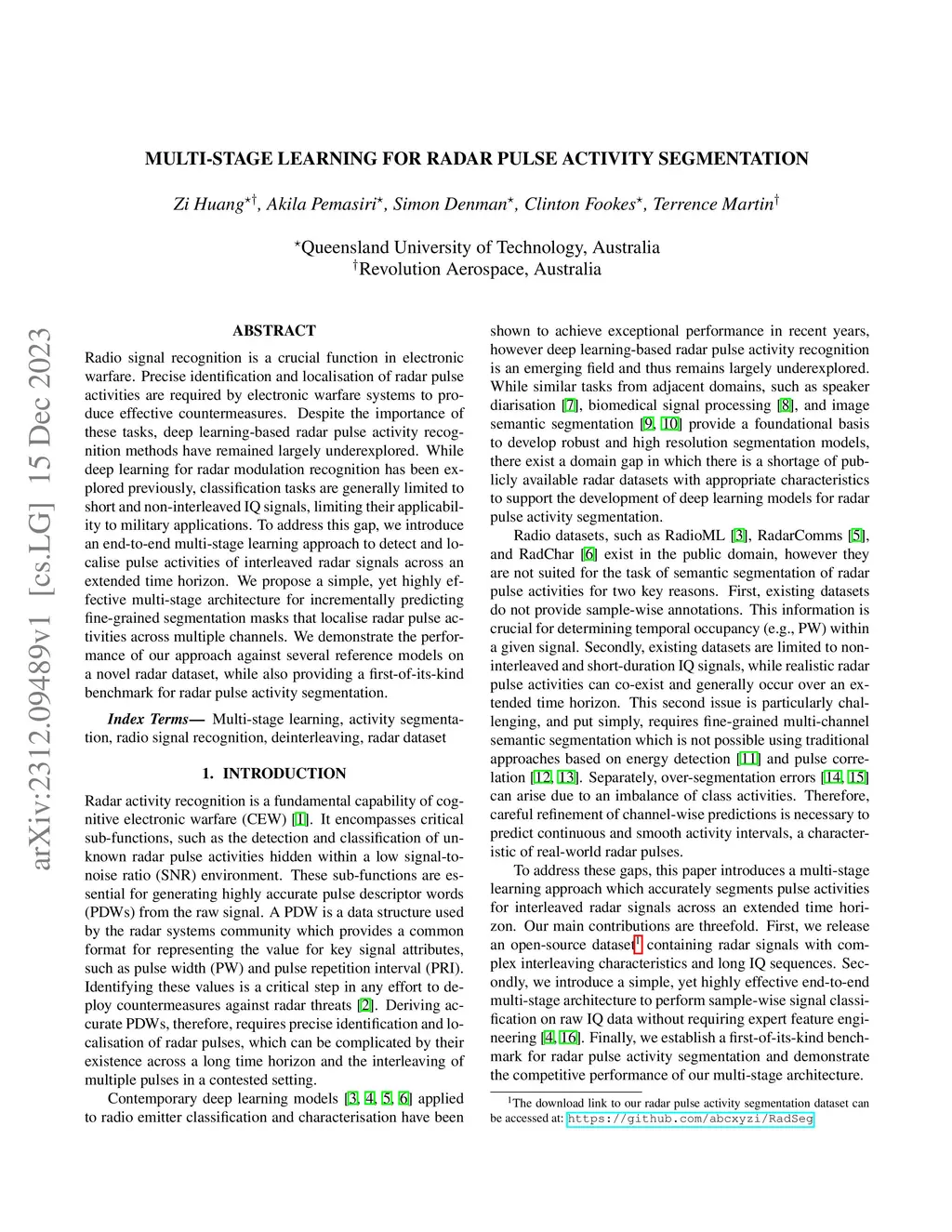 Multi-stage Learning for Radar Pulse Activity Segmentation