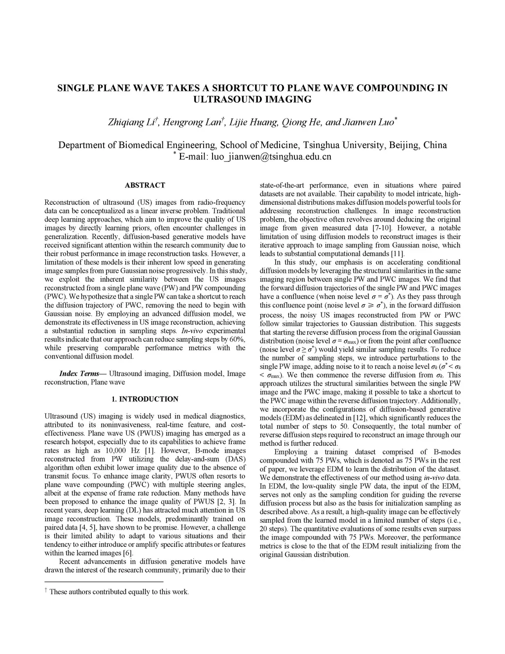 Reconstruction of ultrasound (US) images from radio-frequency data can be conceptualized as a linear inverse problem. Traditional deep learning approaches, which aim to improve the quality of US images by directly learning priors, often encounter challenges in generalization. Recently, diffusion-based generative models have received significant attention within the research community due to their robust performance in image reconstruction tasks. However, a limitation of these models is their inherent low speed in generating image samples from pure Gaussian noise progressively. In this study, we exploit the inherent similarity between the US images reconstructed from a single plane wave (PW) and PW compounding PWC). We hypothesize that a single PW can take a shortcut to reach the diffusion trajectory of PWC, removing the need to begin with Gaussian noise. By employing an advanced diffusion model, we demonstrate its effectiveness in US image reconstruction, achieving a substantial reduction in sampling steps. In-vivo experimental results indicate that our approach can reduce sampling steps by 60%, while preserving comparable performance metrics with the conventional diffusion model.