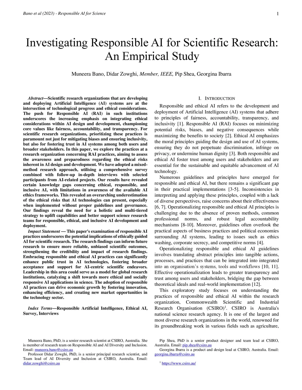 Investigating Responsible AI for Scientific Research: An Empirical Study