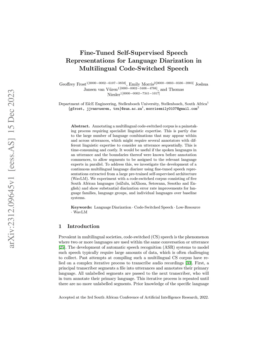 Annotating a multilingual code-switched corpus is a painstaking process requiring specialist linguistic expertise. This is partly due to the large number of language combinations that may appear within and across utterances, which might require several annotators with different linguistic expertise to consider an utterance sequentially. This is time-consuming and costly. It would be useful if the spoken languages in an utterance and the boundaries thereof were known before annotation commences, to allow segments to be assigned to the relevant language experts in parallel. To address this, we investigate the development of a continuous multilingual language diarizer using fine-tuned speech representations extracted from a large pre-trained self-supervised architecture (WavLM). We experiment with a code-switched corpus consisting of five South African languages (isiZulu, isiXhosa, Setswana, Sesotho and English) and show substantial diarization error rate improvements for language families, language groups, and individual languages over baseline systems.