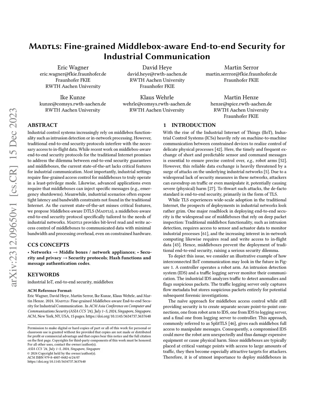Madtls: Fine-grained Middlebox-aware End-to-end Security for Industrial