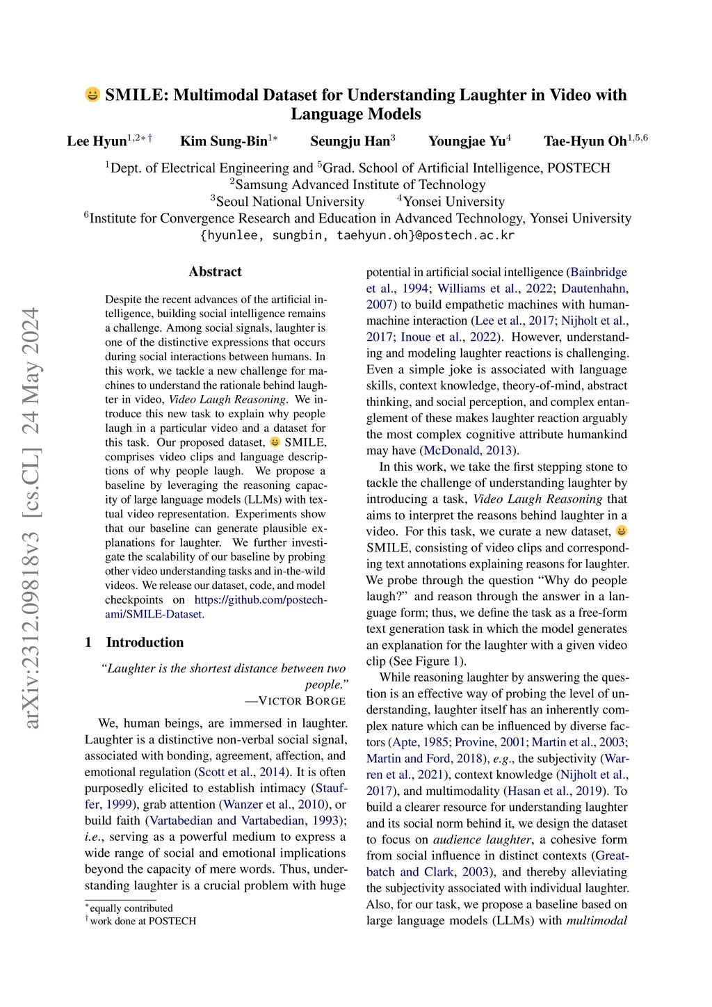 SMILE: Multimodal Dataset for Understanding Laughter in Video with