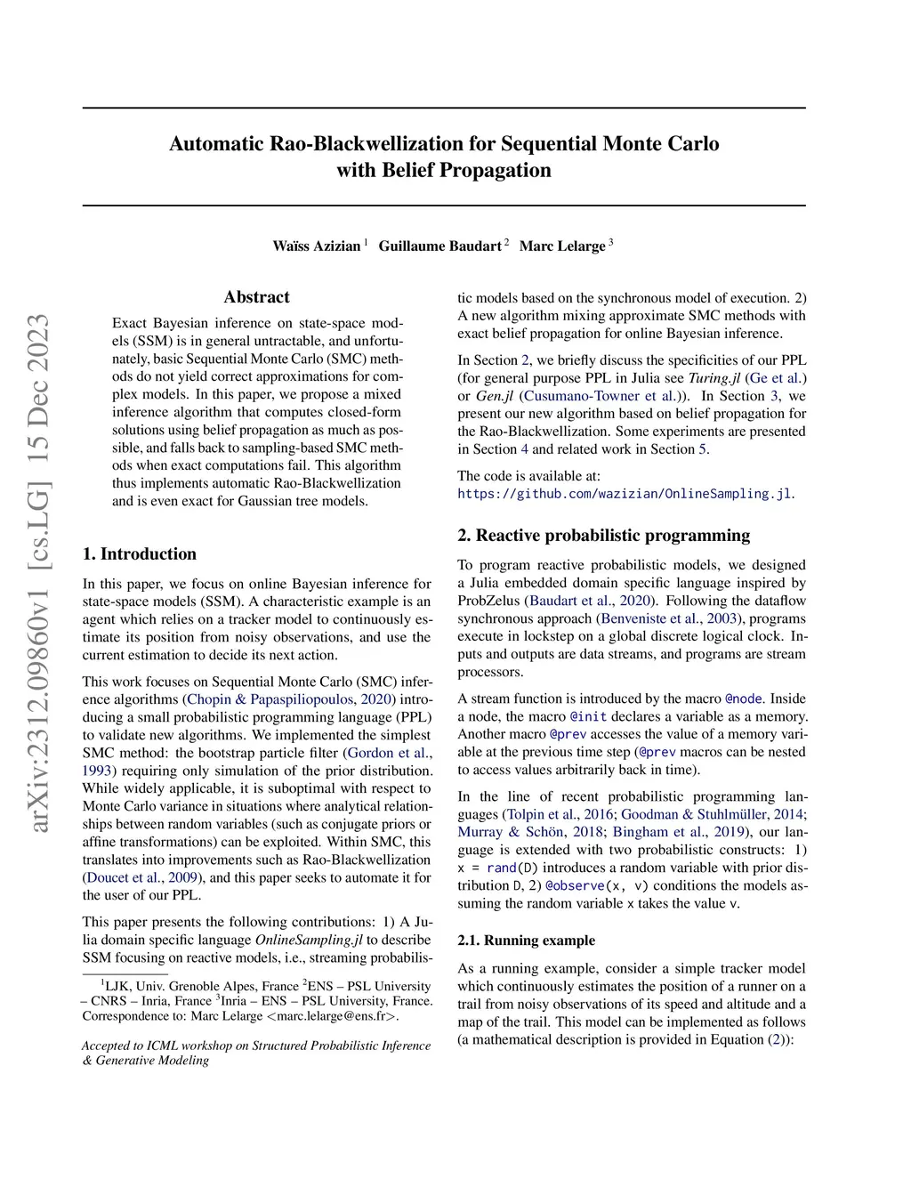 Automatic Rao-Blackwellization for Sequential Monte Carlo with Belief