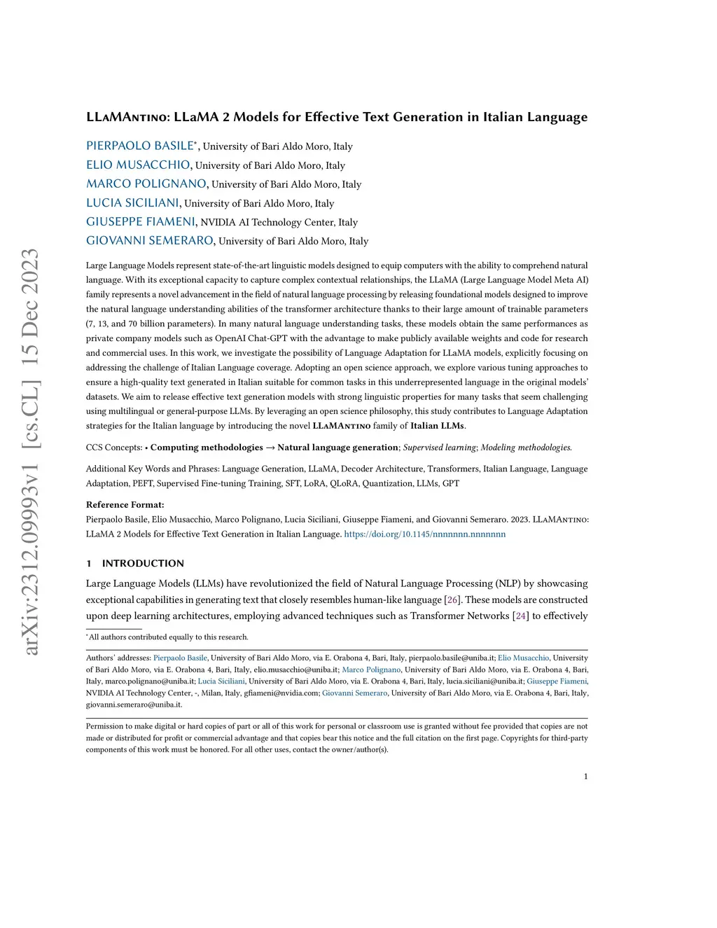 LLaMAntino: LLaMA 2 Models for Effective Text Generation in Italian