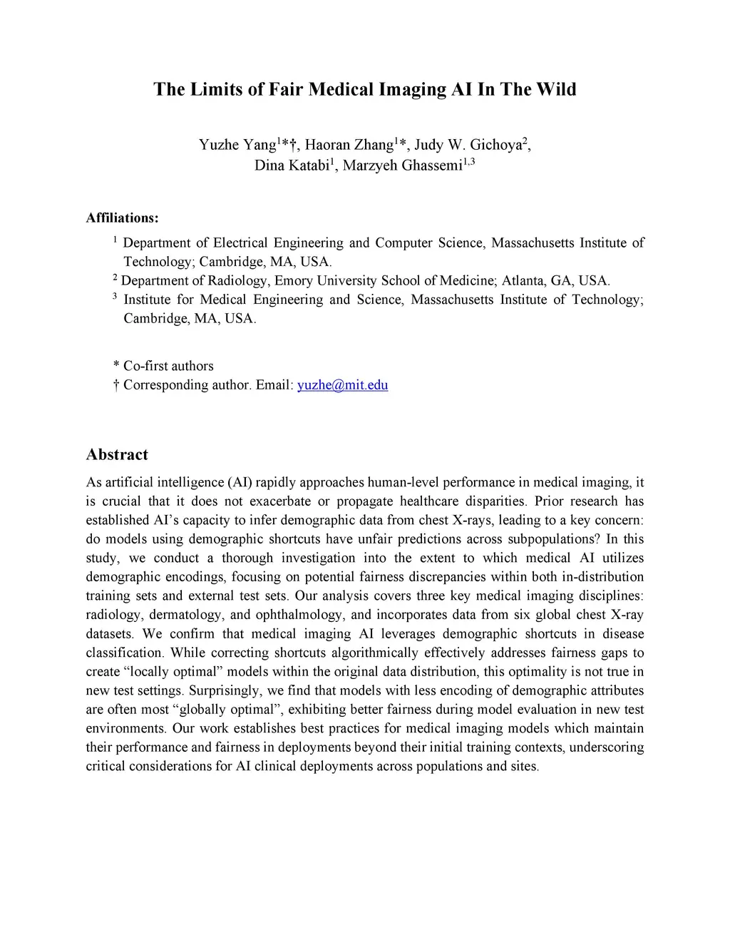 As artificial intelligence (AI) rapidly approaches human-level performance in medical imaging, it is crucial that it does not exacerbate or propagate healthcare disparities. Prior research has established AI's capacity to infer demographic data from chest X-rays, leading to a key concern: do models using demographic shortcuts have unfair predictions across subpopulations? In this study, we conduct a thorough investigation into the extent to which medical AI utilizes demographic encodings, focusing on potential fairness discrepancies within both in-distribution training sets and external test sets. Our analysis covers three key medical imaging disciplines: radiology, dermatology, and ophthalmology, and incorporates data from six global chest X-ray datasets. We confirm that medical imaging AI leverages demographic shortcuts in disease classification. While correcting shortcuts algorithmically effectively addresses fairness gaps to create "locally optimal" models within the original data distribution, this optimality is not true in new test settings. Surprisingly, we find that models with less encoding of demographic attributes are often most "globally optimal", exhibiting better fairness during model evaluation in new test environments. Our work establishes best practices for medical imaging models which maintain their performance and fairness in deployments beyond their initial training contexts, underscoring critical considerations for AI clinical deployments across populations and sites.