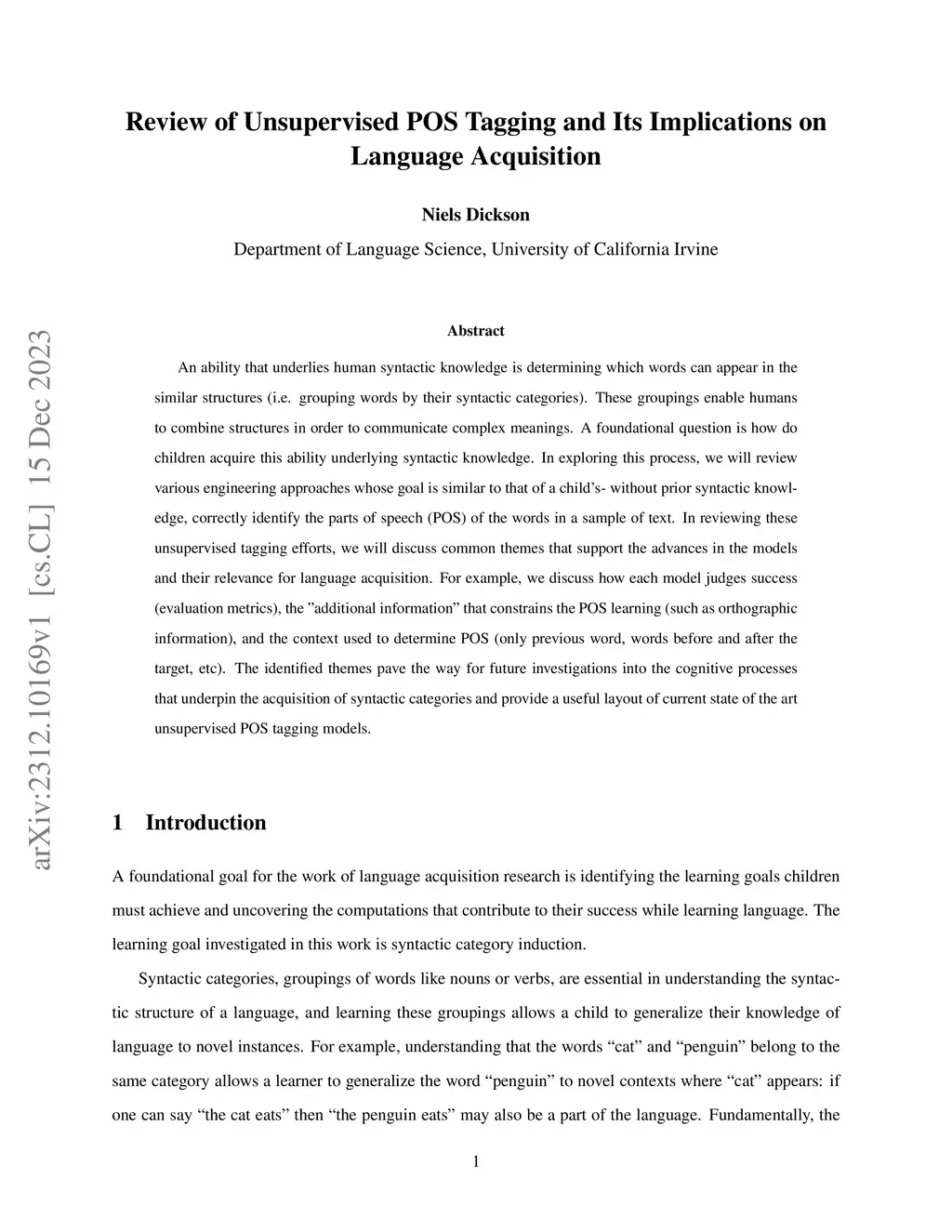 Review of Unsupervised POS Tagging and Its Implications on Language