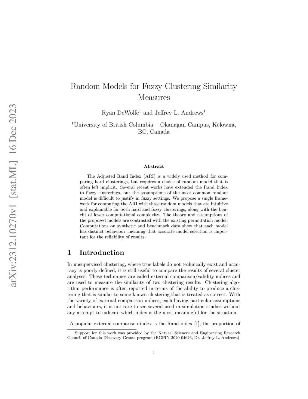 The Adjusted Rand Index (ARI) is a widely used method for comparing hard clusterings, but requires a choice of random model that is often left implicit. Several recent works have extended the Rand Index to fuzzy clusterings, but the assumptions of the most common random model is difficult to justify in fuzzy settings. We propose a single framework for computing the ARI with three random models that are intuitive and explainable for both hard and fuzzy clusterings, along with the benefit of lower computational complexity. The theory and assumptions of the proposed models are contrasted with the existing permutation model. Computations on synthetic and benchmark data show that each model has distinct behaviour, meaning that accurate model selection is important for the reliability of results.