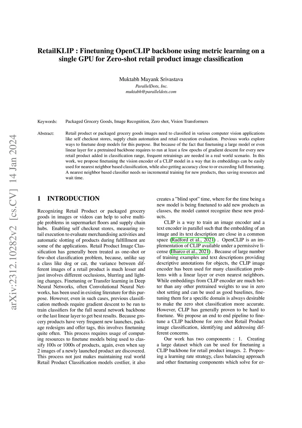 RetailKLIP : Finetuning OpenCLIP backbone using metric learning on a