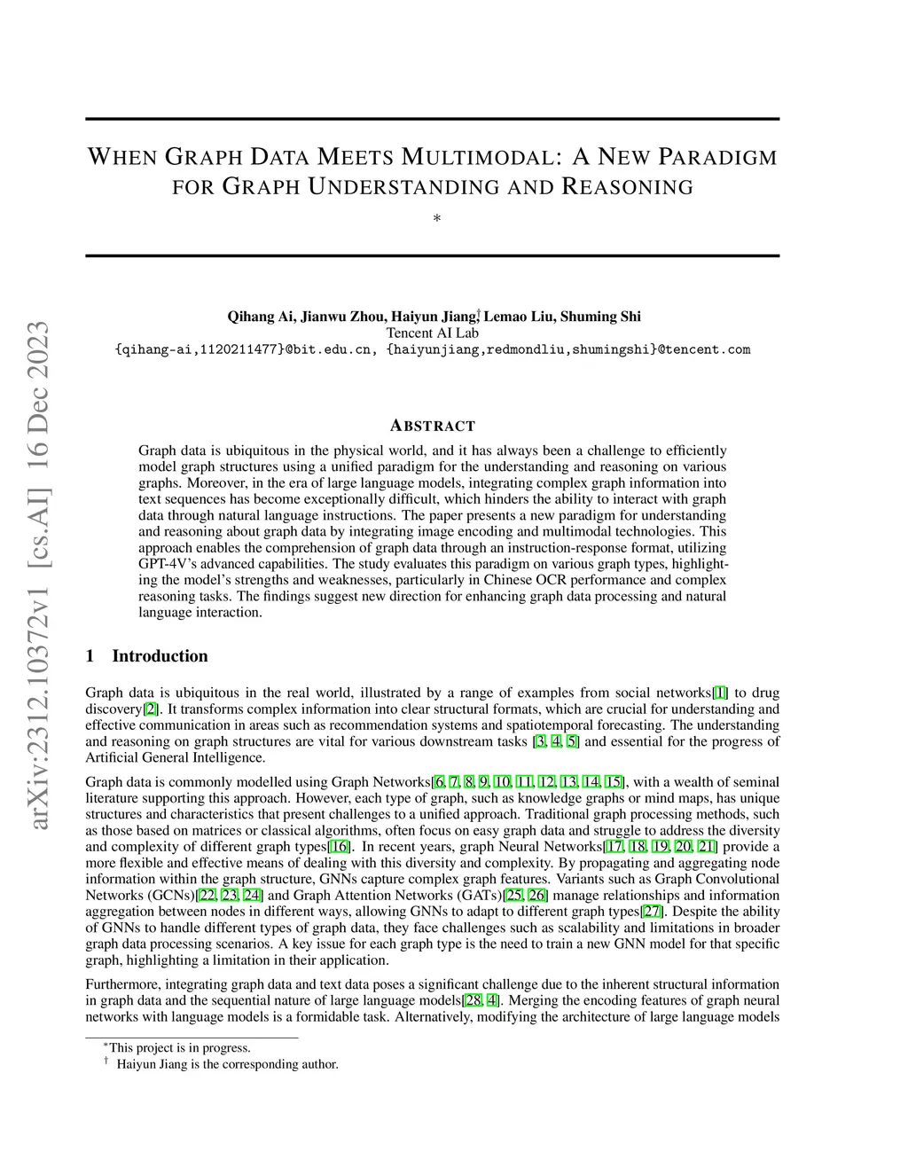 Graph data is ubiquitous in the physical world, and it has always been a challenge to efficiently model graph structures using a unified paradigm for the understanding and reasoning on various graphs. Moreover, in the era of large language models, integrating complex graph information into text sequences has become exceptionally difficult, which hinders the ability to interact with graph data through natural language instructions.The paper presents a new paradigm for understanding and reasoning about graph data by integrating image encoding and multimodal technologies. This approach enables the comprehension of graph data through an instruction-response format, utilizing GPT-4V's advanced capabilities. The study evaluates this paradigm on various graph types, highlighting the model's strengths and weaknesses, particularly in Chinese OCR performance and complex reasoning tasks. The findings suggest new direction for enhancing graph data processing and natural language interaction.