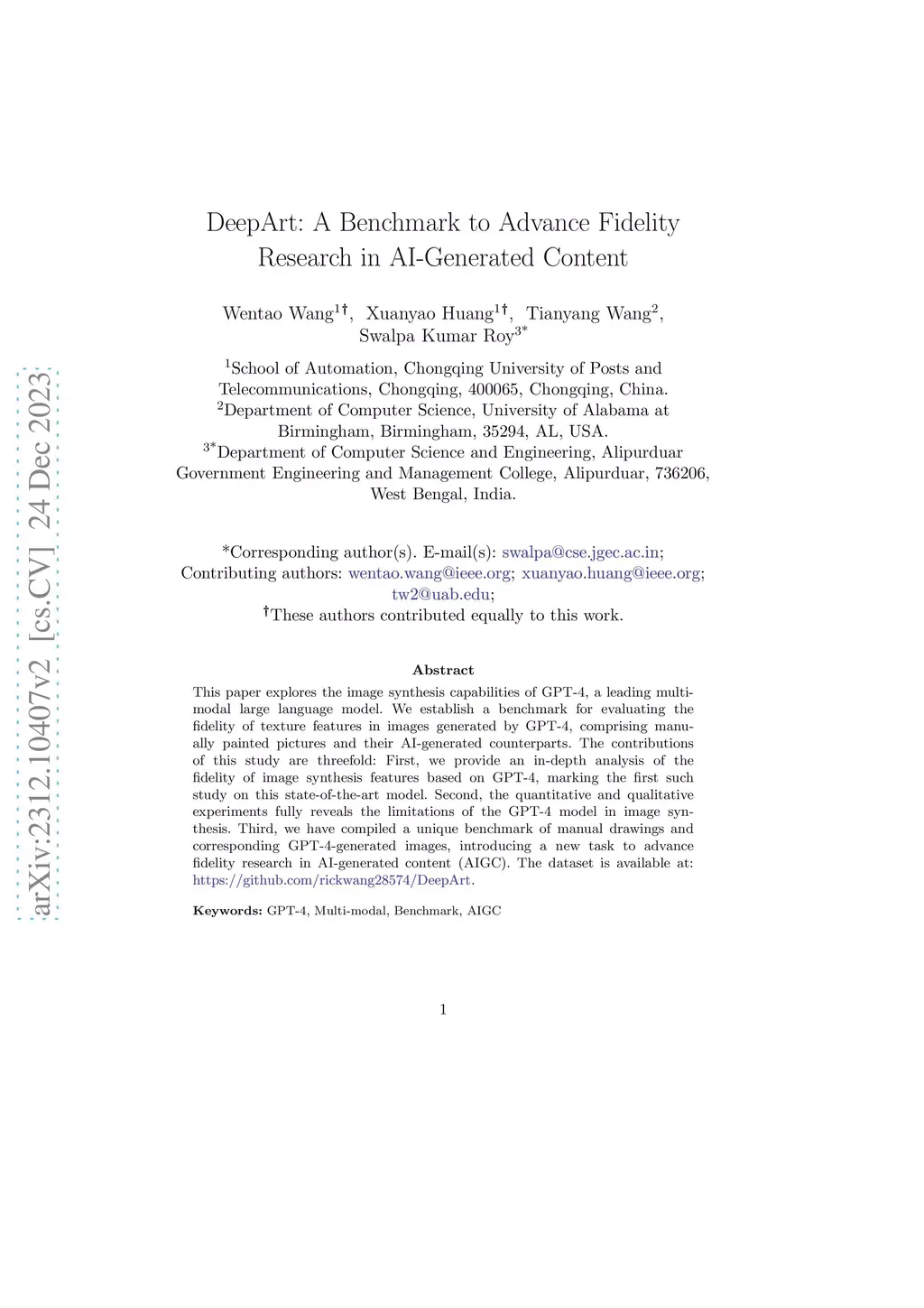 DeepArt: A Benchmark to Advance Fidelity Research in AI-Generated