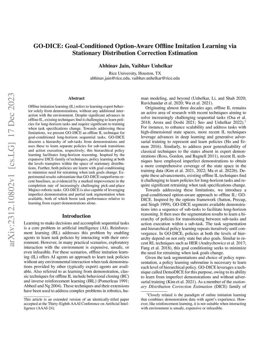 GO-DICE: Goal-Conditioned Option-Aware Offline Imitation Learning via