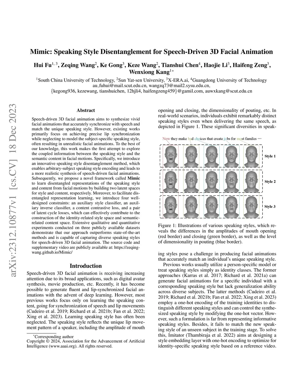 Mimic: Speaking Style Disentanglement for Speech-Driven 3D Facial