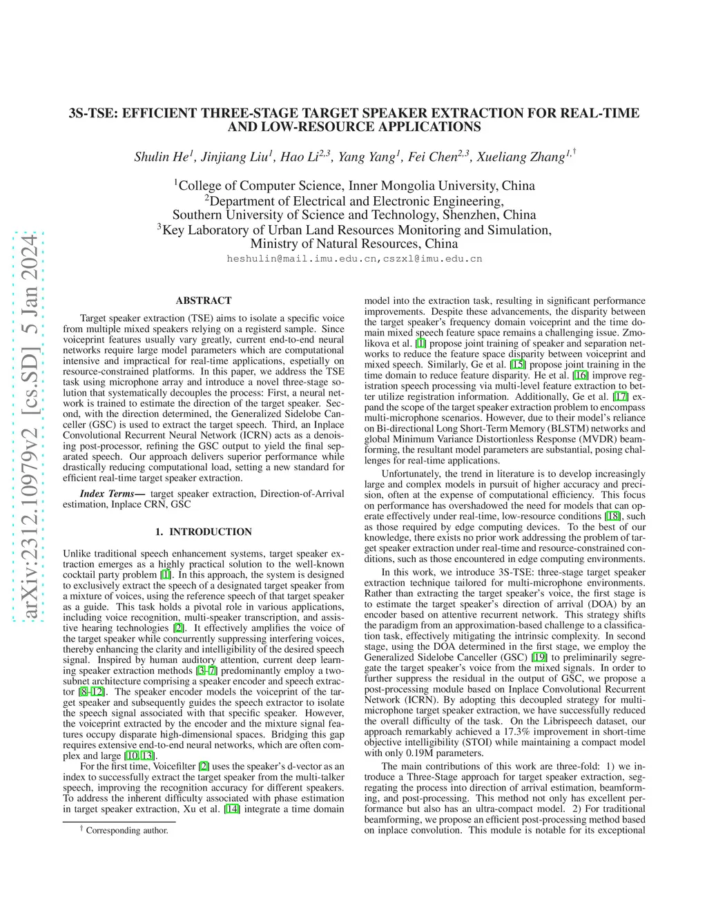 Target speaker extraction (TSE) aims to isolate a specific voice from multiple mixed speakers relying on a registerd sample. Since voiceprint features usually vary greatly, current end-to-end neural networks require large model parameters which are computational intensive and impractical for real-time applications, espetially on resource-constrained platforms. In this paper, we address the TSE task using microphone array and introduce a novel three-stage solution that systematically decouples the process: First, a neural network is trained to estimate the direction of the target speaker. Second, with the direction determined, the Generalized Sidelobe Canceller (GSC) is used to extract the target speech. Third, an Inplace Convolutional Recurrent Neural Network (ICRN) acts as a denoising post-processor, refining the GSC output to yield the final separated speech. Our approach delivers superior performance while drastically reducing computational load, setting a new standard for efficient real-time target speaker extraction.