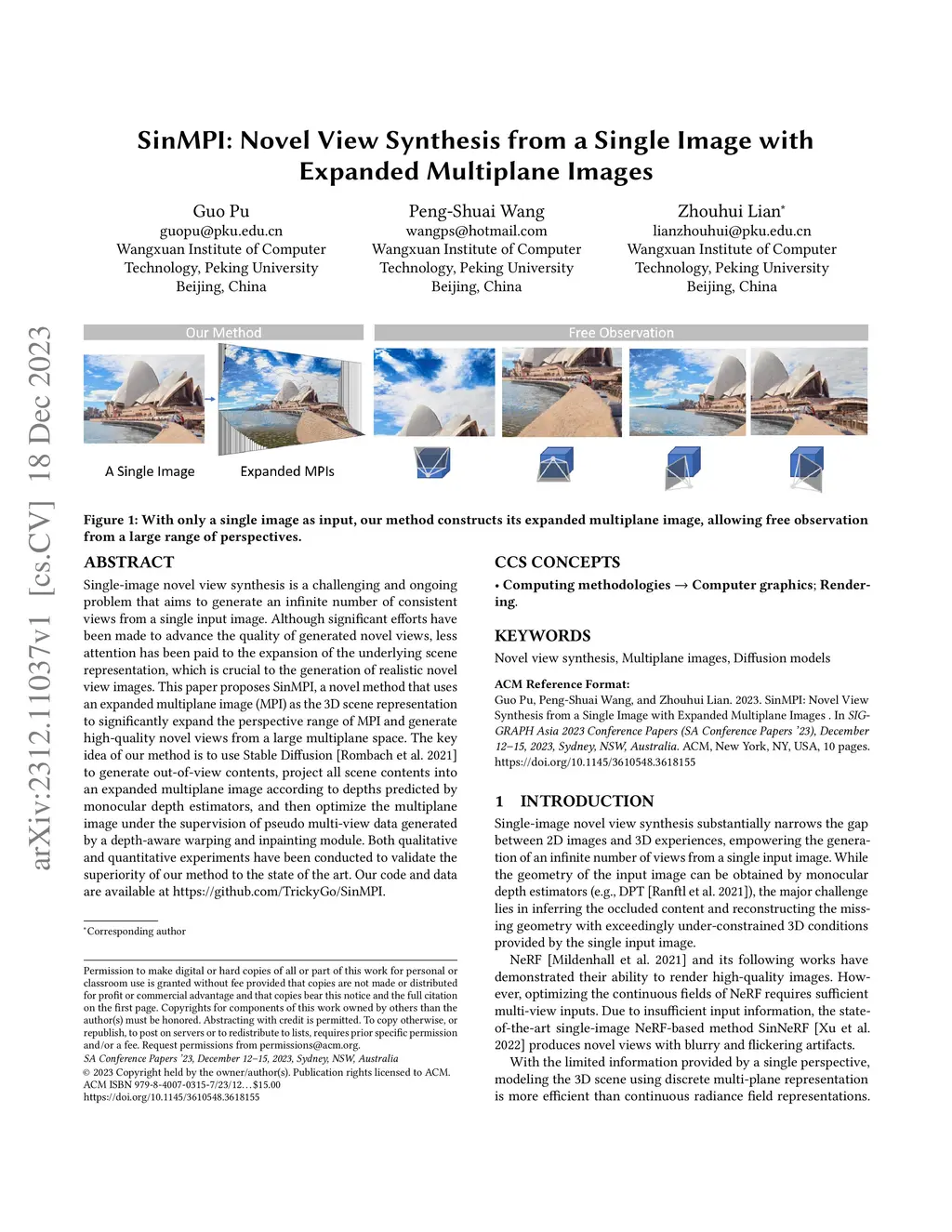 SinMPI: Novel View Synthesis from a Single Image with Expanded