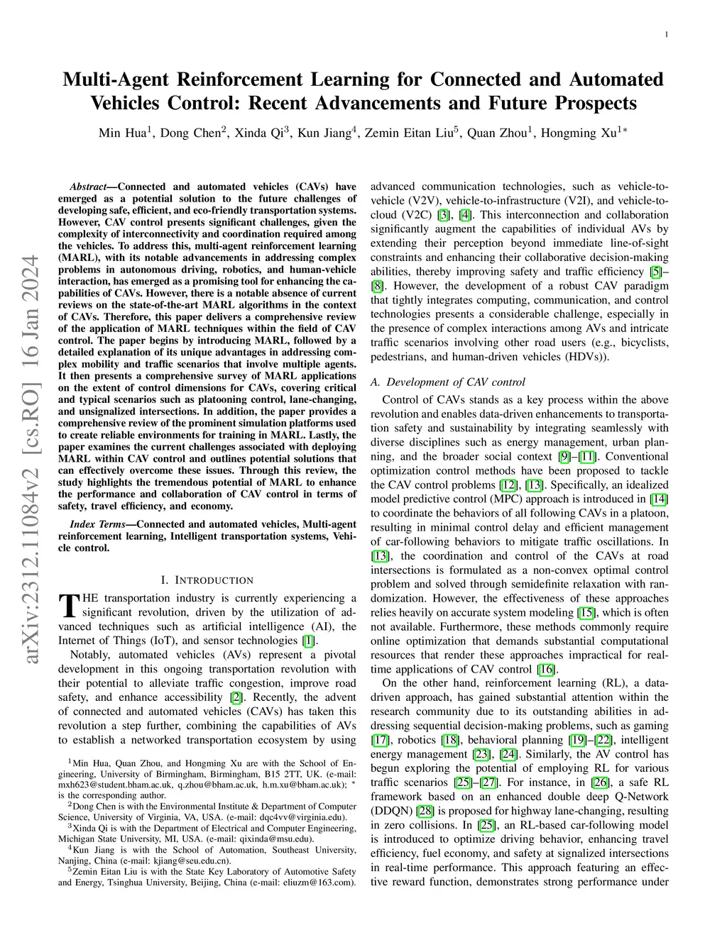 Multi-Agent Reinforcement Learning for Connected and Automated Vehicles
