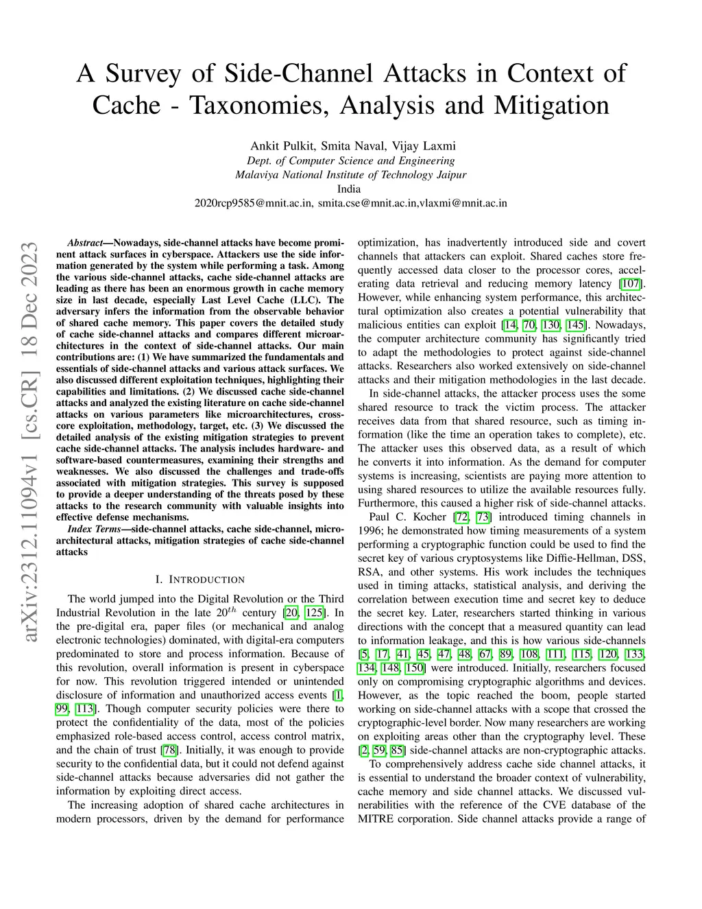 A Survey of Side-Channel Attacks in Context of Cache -- Taxonomies,