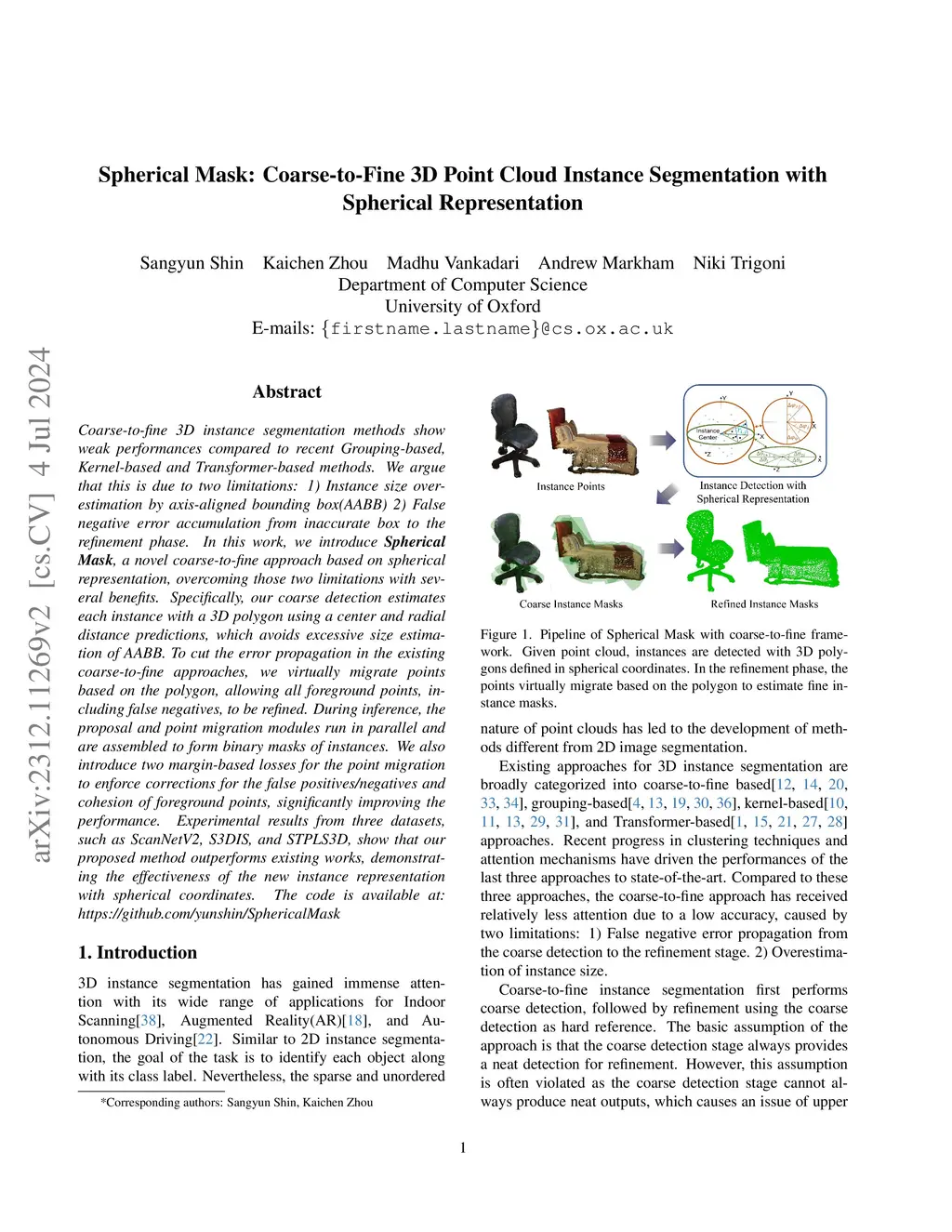 Spherical Mask: Coarse-to-Fine 3D Point Cloud Instance Segmentation with