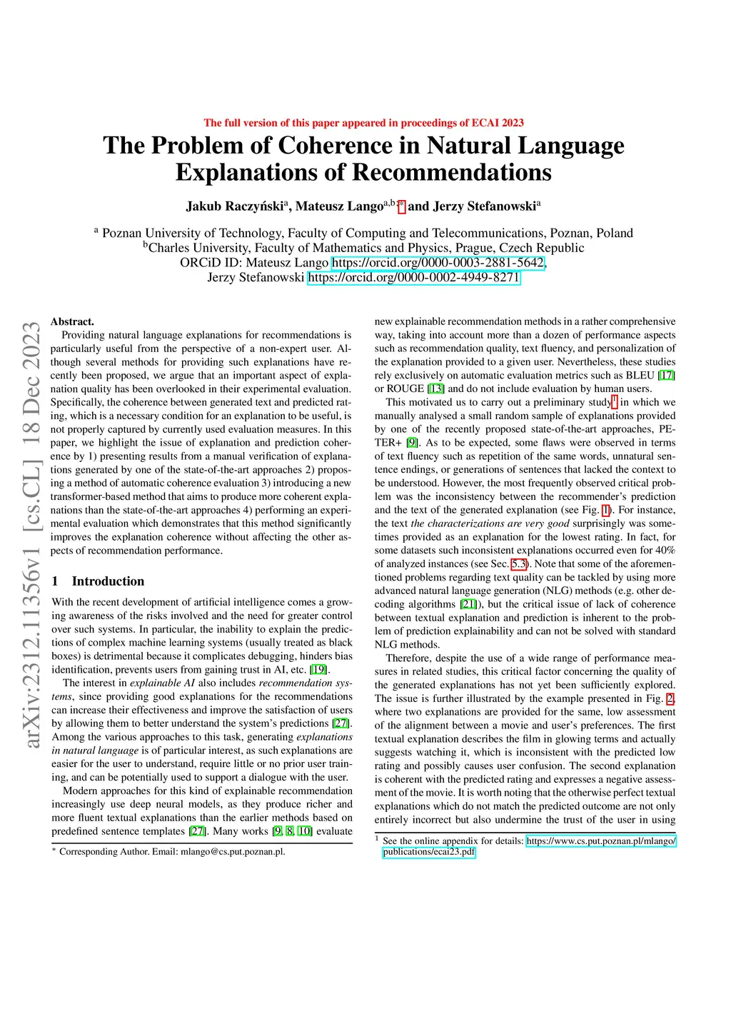 The Problem of Coherence in Natural Language Explanations of Recommendations