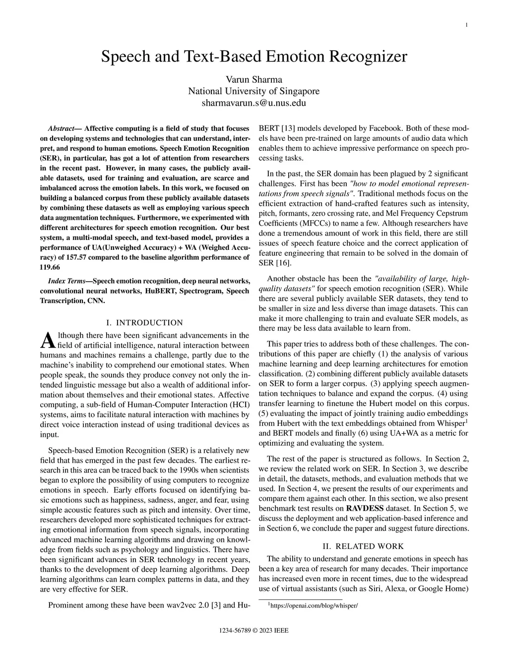 Affective computing is a field of study that focuses on developing systems and technologies that can understand, interpret, and respond to human emotions. Speech Emotion Recognition (SER), in particular, has got a lot of attention from researchers in the recent past. However, in many cases, the publicly available datasets, used for training and evaluation, are scarce and imbalanced across the emotion labels. In this work, we focused on building a balanced corpus from these publicly available datasets by combining these datasets as well as employing various speech data augmentation techniques. Furthermore, we experimented with different architectures for speech emotion recognition. Our best system, a multi-modal speech, and text-based model, provides a performance of UA(Unweighed Accuracy) + WA (Weighed Accuracy) of 157.57 compared to the baseline algorithm performance of 119.66