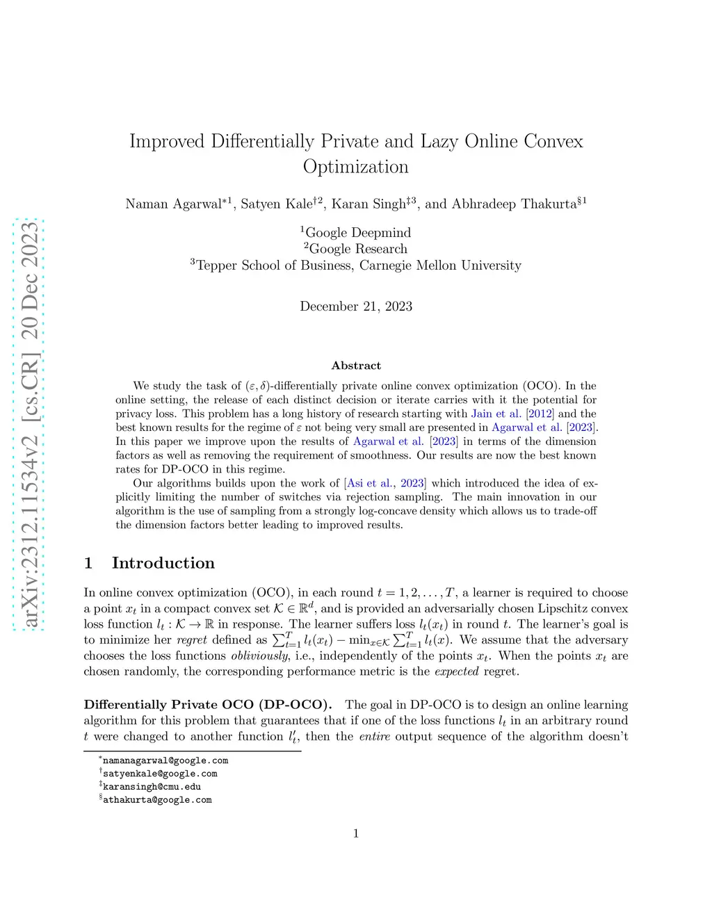 Improved Differentially Private and Lazy Online Convex Optimization