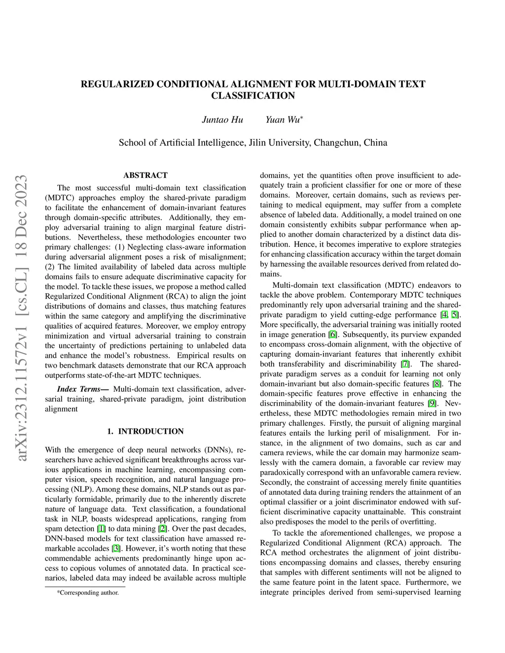 Regularized Conditional Alignment for Multi-Domain Text Classification