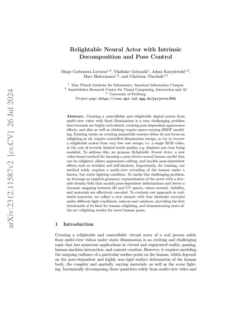 Relightable Neural Actor with Intrinsic Decomposition and Pose Control