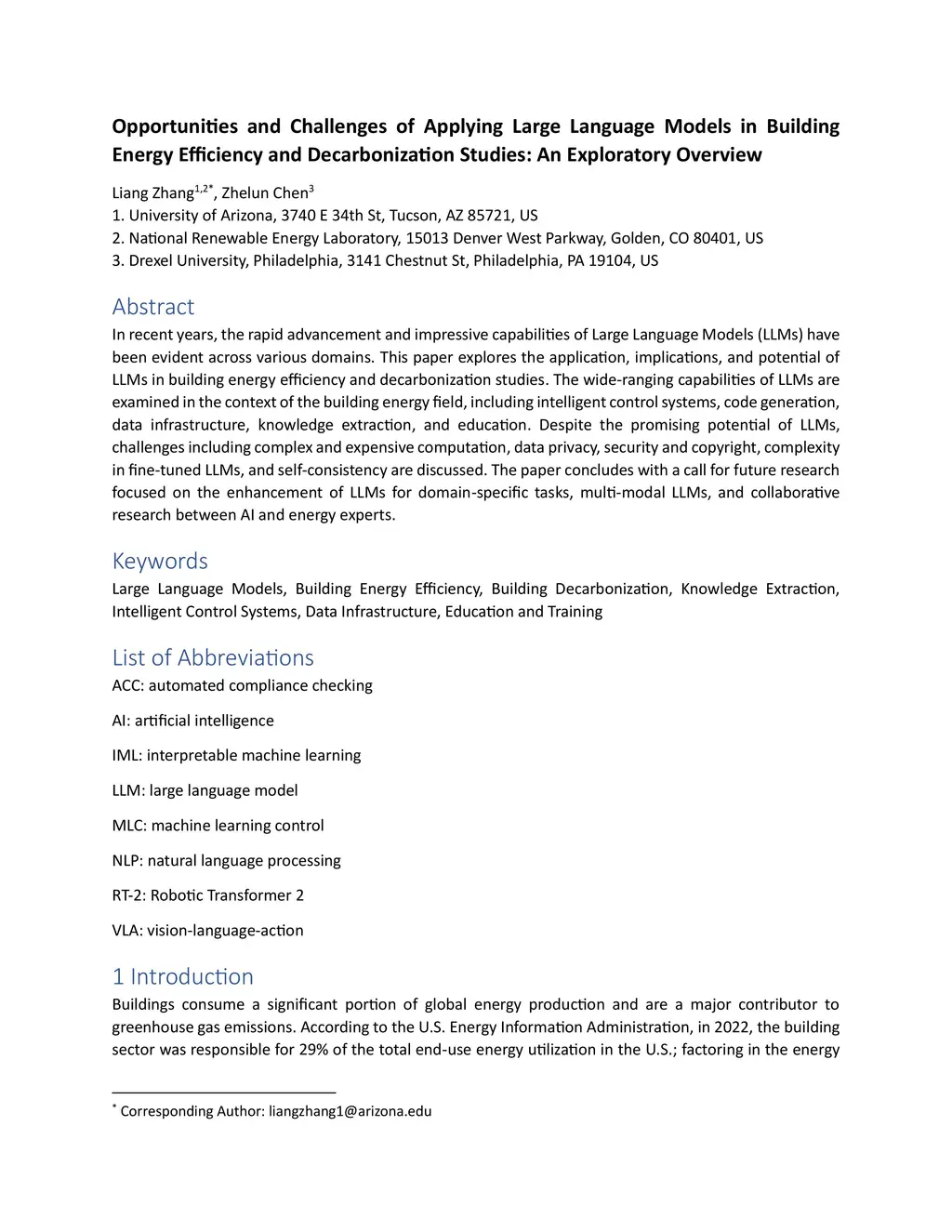 In recent years, the rapid advancement and impressive capabilities of Large Language Models (LLMs) have been evident across various domains. This paper explores the application, implications, and potential of LLMs in building energy efficiency and decarbonization studies. The wide-ranging capabilities of LLMs are examined in the context of the building energy field, including intelligent control systems, code generation, data infrastructure, knowledge extraction, and education. Despite the promising potential of LLMs, challenges including complex and expensive computation, data privacy, security and copyright, complexity in fine-tuned LLMs, and self-consistency are discussed. The paper concludes with a call for future research focused on the enhancement of LLMs for domain-specific tasks, multi-modal LLMs, and collaborative research between AI and energy experts.