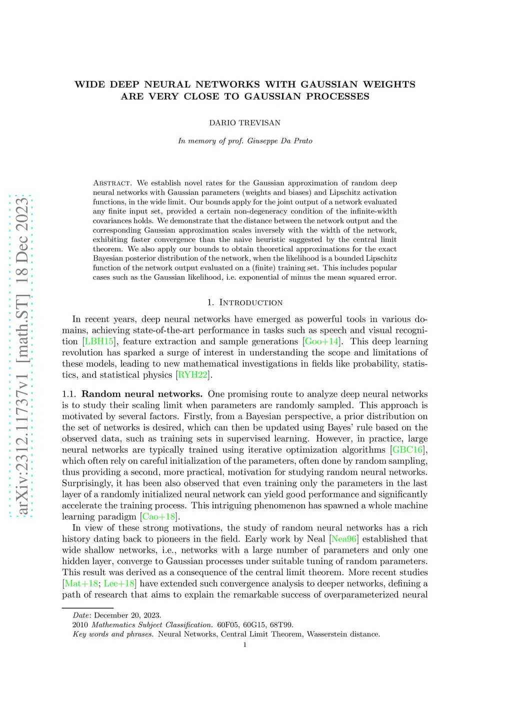 Wide Deep Neural Networks with Gaussian Weights are Very Close to