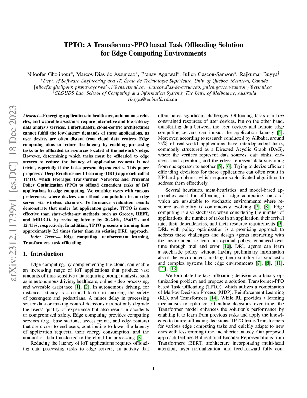 TPTO: A Transformer-PPO based Task Offloading Solution for Edge