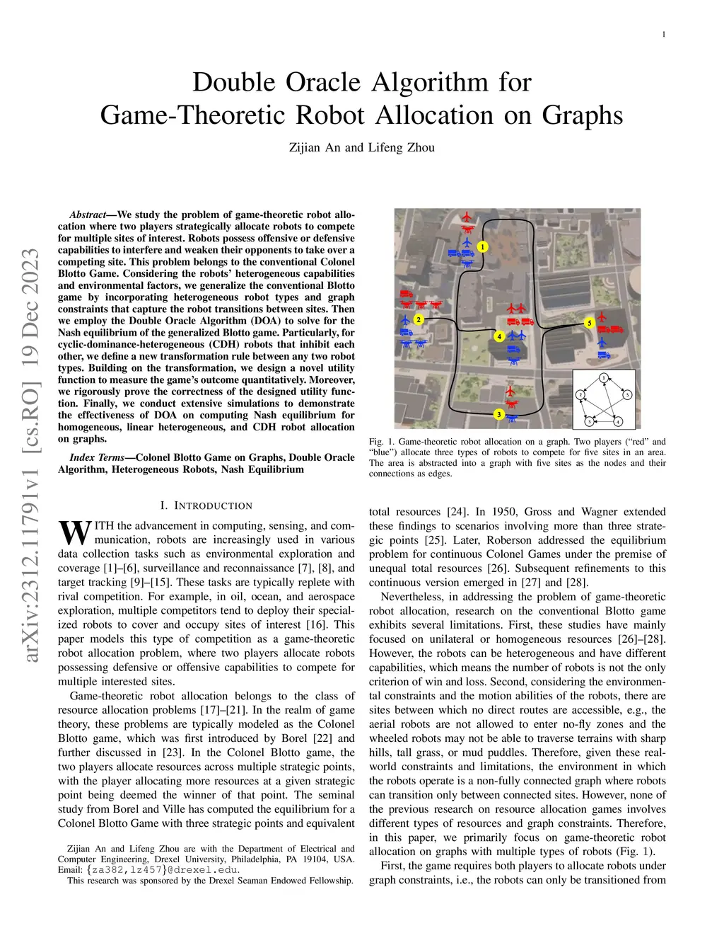 Double Oracle Algorithm for Game-Theoretic Robot Allocation on Graphs