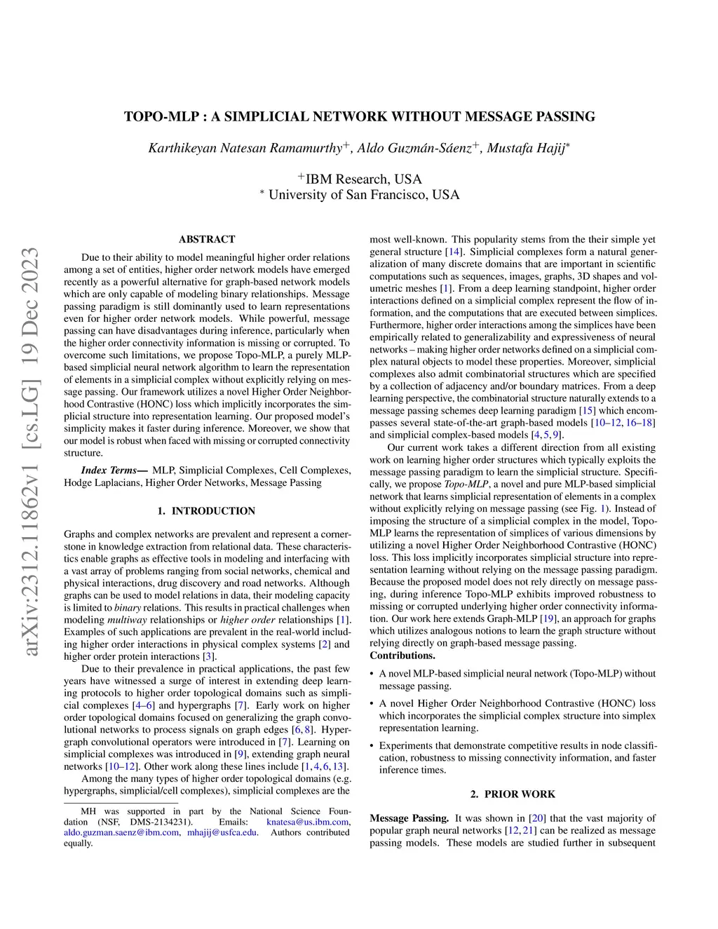 Topo-MLP : A Simplicial Network Without Message Passing
