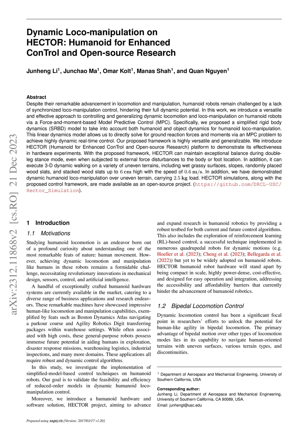 Dynamic Loco-manipulation on HECTOR: Humanoid for Enhanced ConTrol and