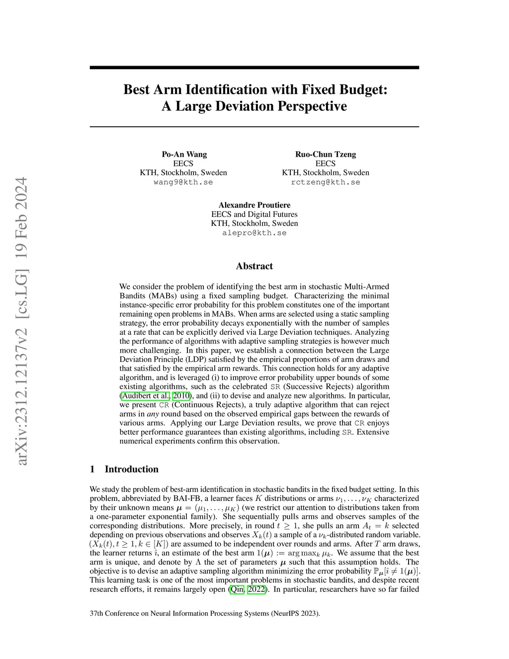Best Arm Identification with Fixed Budget: A Large Deviation Perspective